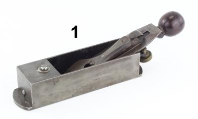 7502-1 STANLEY No. 9 cabinetmaker's block plane. No hot dog. Vee cutter. Tiny crack at rear of body but metal otherwise clean. Knob has very mild wear. Good (HUH1638) 300-600