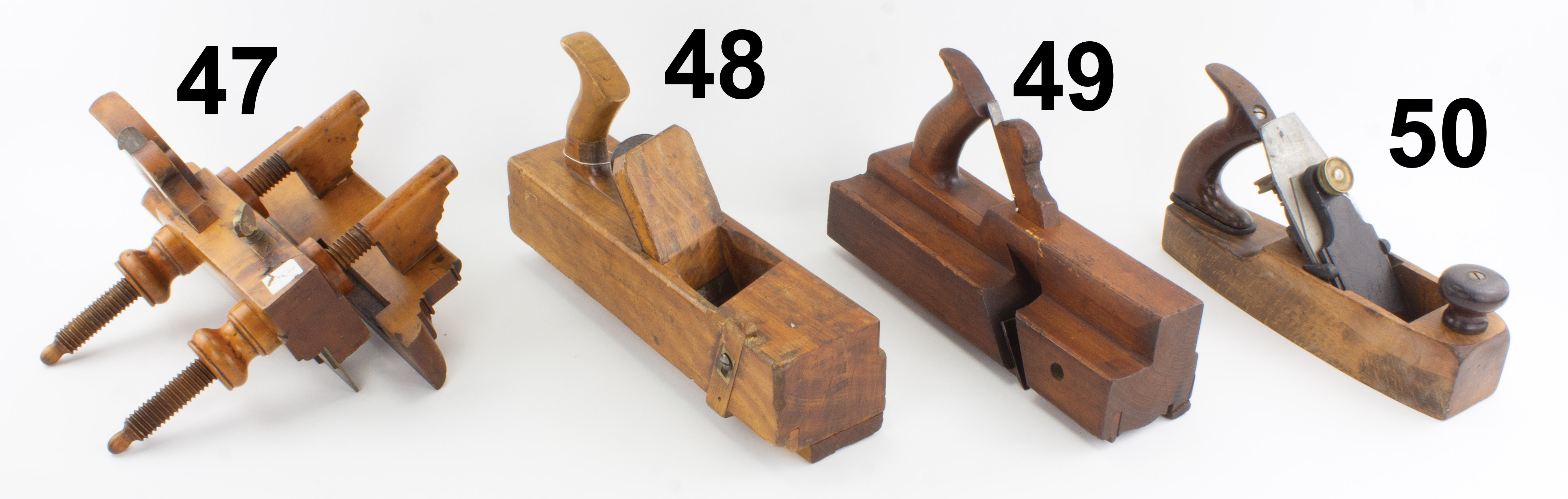 7502-47 ARROWMAMMET WORKS screw arm plow plane. Solid boxwood. Light chipping to threads. Tight crack in fence, very shallow nick on tip of tote, a few stains. Ohio Tool Co. cutter, B mark on toe. Good+ (BLY255) 80-160