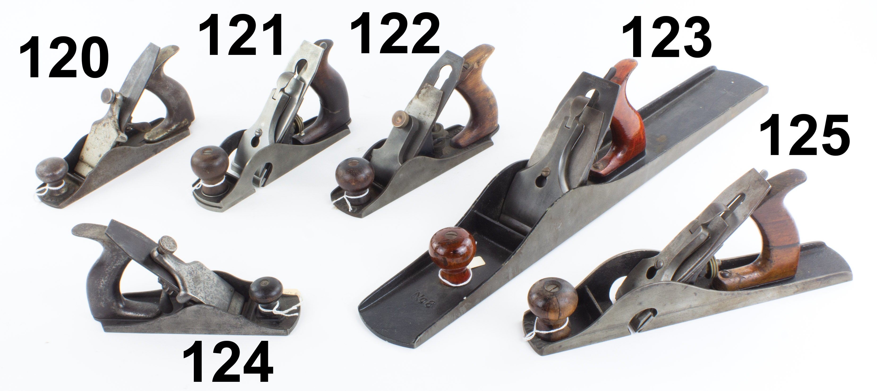 7502-124 CHAPLIN No. 3 smoothing plane. 8-1/2" sole, steel tote with nickel plating 50%, japanning 80%, original marked cutter. Small rosewood knob. Good (HUH325) 40-80