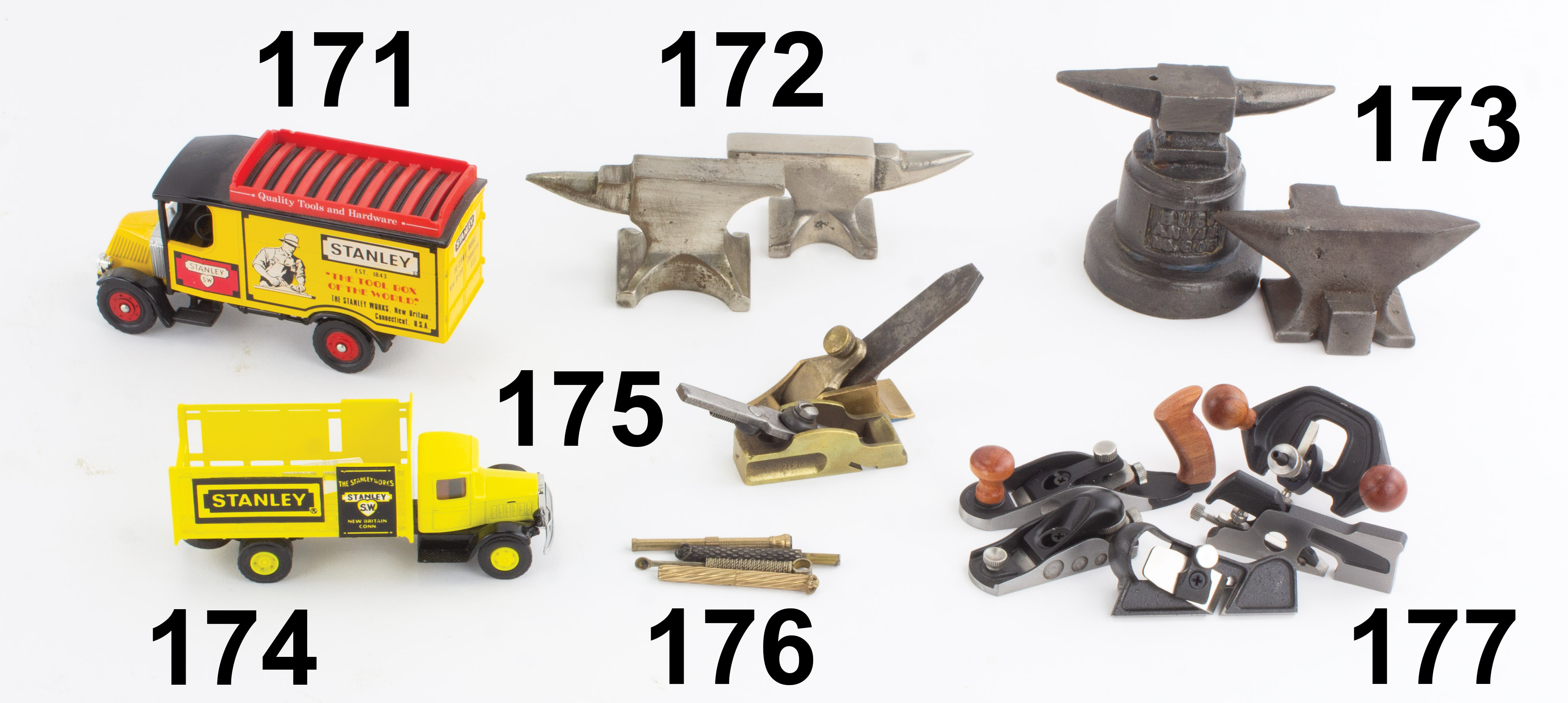 7502-176 Lot of four miniature items. Three toothpicks with decorative brass handles, two have ends that retract into base by twisting and the other retracts by sliding the sleeve. Plus a miniature spoon that looks to be made of stainless steel. Roughly 2" long. Good+ (SPM1361) 40-80