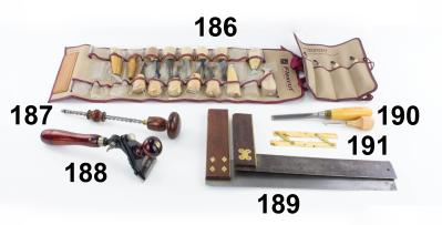 7502-186 Two sets of FLEXCUT carving tools. One set of four gouges and one set of 15 carving tools, most by FLEXCUT but some other makers mixed in. Both in original fabric rolls. Good (KLY014) 75-150