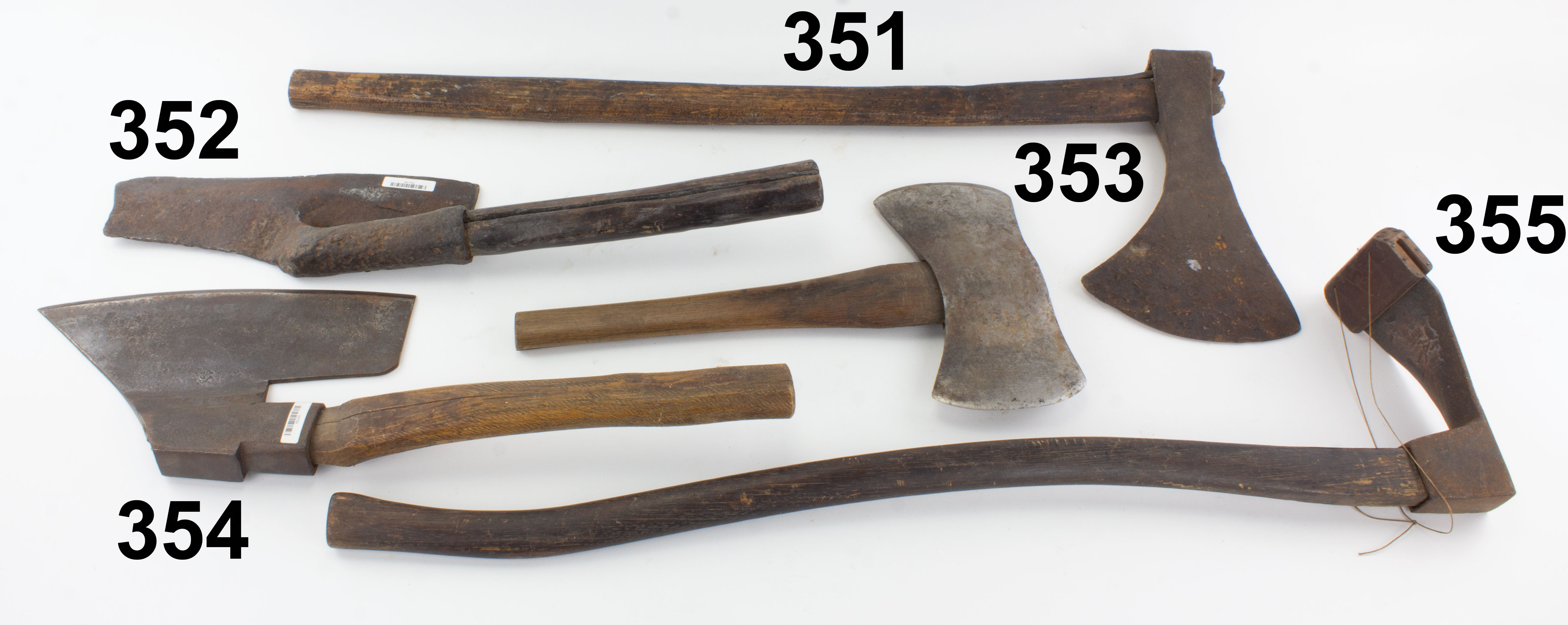 7502-354 BUSSTAHL goosewing broad axe. Marked Busstahl - Seebach, 12" edge, 13-1/2" long handle looks original with a few splits and wear, some dings to head but edge is good. From the collection of John Lervoog. Good (PBU200) 75-150