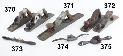 7502-370 Lot of two STEERS Patent No. 305 jack planes. One with broken tote, and the other has detached tote and missing knob. Both with significant wear to rosewood strips. One has original marked cutter. Parts planes. Good- (HUH293) 50-100
